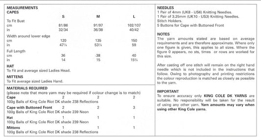 King Cole Pattern No. 4679 Capes, Hat & Mittens (DK)