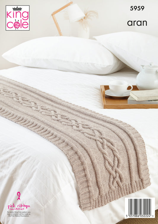 King Cole Wool Aran Knitting Pattern No: 5959 Blanket, Cushion,Bed Runner