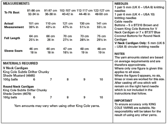 King Cole Drifter Chunky Pattern 5683 Cardigans