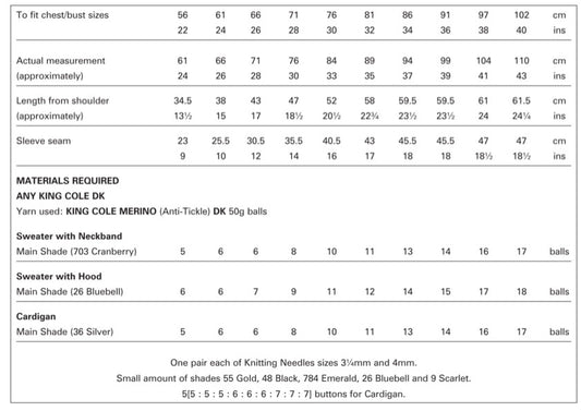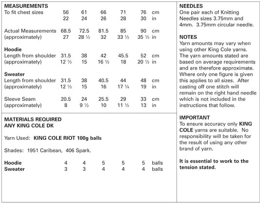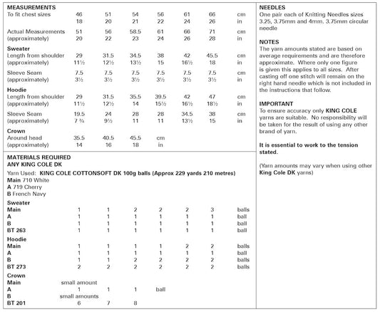 King Cole Knitting Pattern 6023 Sweater, Hoodie & Crown (DK)