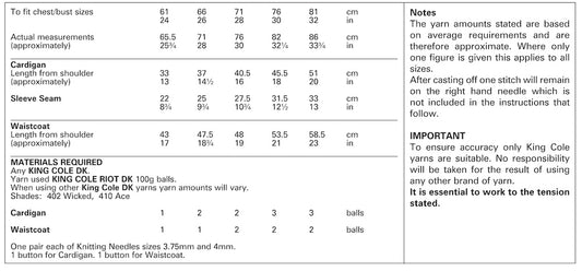 King Cole Knitting Pattern No. 3485 Cardigan & Waistcoat (DK)
