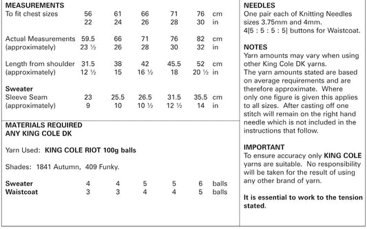 King Cole Knitting Pattern No. 4777 Sweater & Waistcoat (DK)