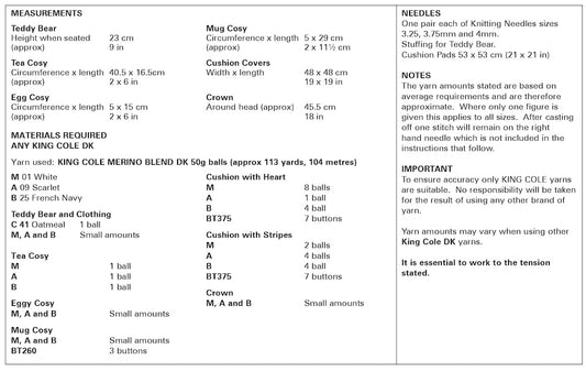 King Cole Knitting Pattern 6026 Teddy Bear and Accessories (DK)