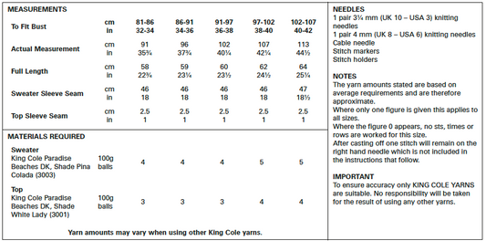 King Cole Pattern 6024 Sweater, Tank Top & Crown
