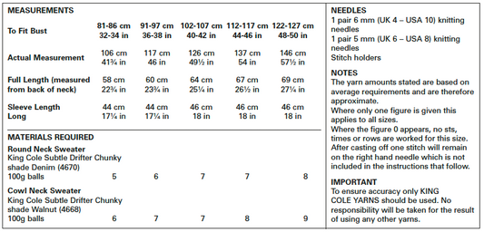 King Cole Drifter Chunky Pattern 5681 Ladies Sweater