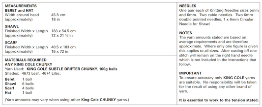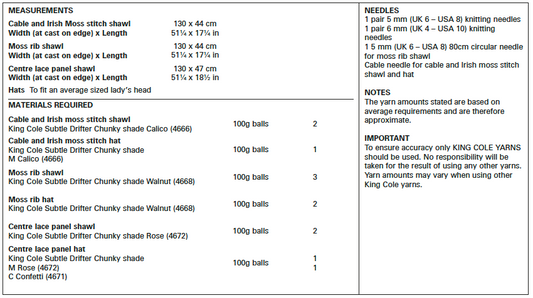 King Cole Drifter Chunky Pattern 5685 Shawls & Hats