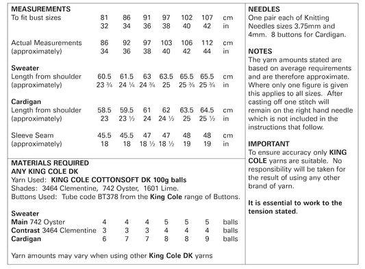 King Cole Pattern Cottonsoft DK 5736 Sweater & Cardigan
