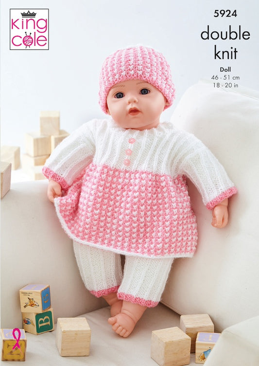 King Cole Pattern 5923 Doll Babygrow, Bootees, Jacket, Leggings & Hat