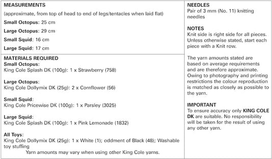 King Cole Pattern No. 9092 Octopus & Squid Toys