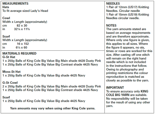 King Cole Pattern No. 5533 Hats, Cowl and Scarf Super Chunky