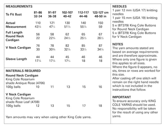 King Cole Rosarium Pattern 5752 Ladies Round & V Neck Cardigan
