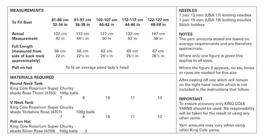 King Cole Rosarium Pattern 5753 Ladies Tanks and Hat