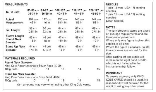 King Cole Rosarium Pattern 5754 Ladies Sweaters