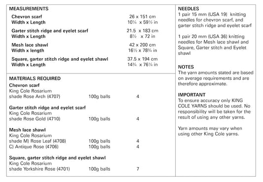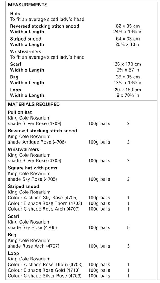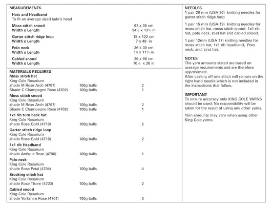 King Cole Rosarium Pattern 5755 Hats, Snoods, and Accessories