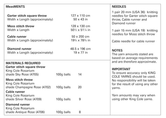 King Cole Rosarium Pattern 5758 Blankets & Bed Runners