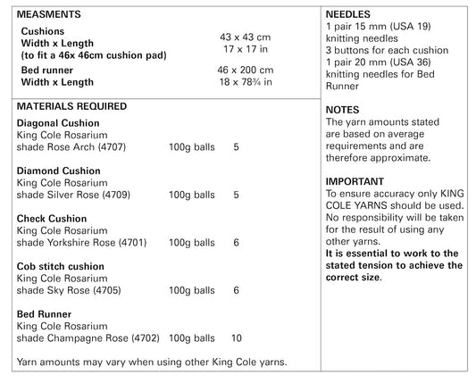King Cole Rosarium Pattern 5759 Cushions and Bed Runner