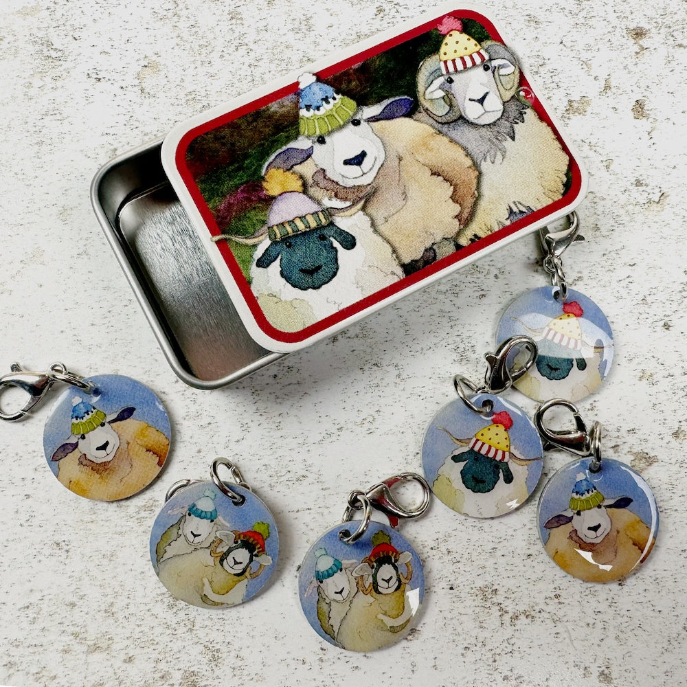 Six Crochet stitch markers - 2 each of three designs or 1 each of 6 designs.
