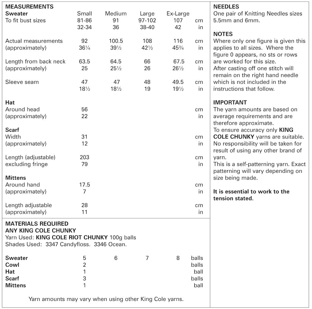King Cole Pattern No. 5411 Sweater, Cowl, Hat, Scarf & Mittens