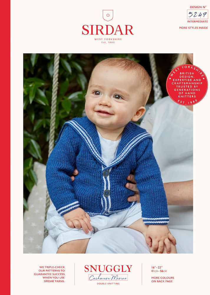 Sirdar Snuggly Cashmere Merino Knitting Pattern 5247 Sailor Cardigan (DK)